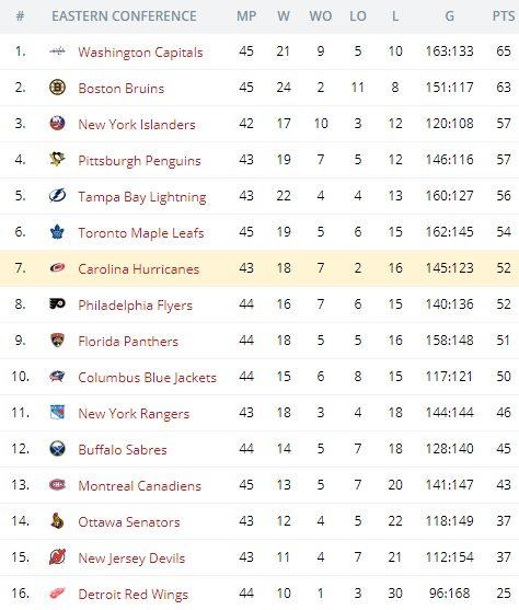 «Каролина» по заброшенным шайбам и пропущенным показывает результат выше среднего, на 8-м месте по обоим этим параметрам и это позволяет Ураганам держаться в зоне плей-офф.