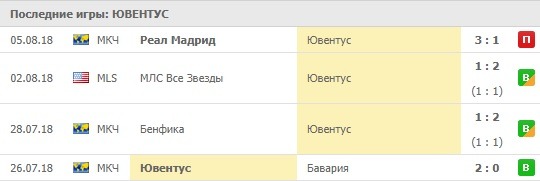 Ввиду того, что большая часть основного состава (в том числе и футболисты сборной Италии) участие на чемпионате мире 2018 в России не принимали, на предсезонной подготовке у Массимилиано Аллегри был большой выбор игроков. Так вот на пути к первому матчу в Серии А «Ювентус» провёл 4 поединка, добившись следующих результатов: