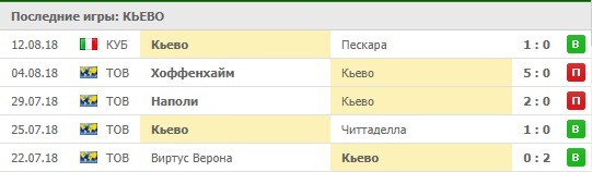 «Кьево» – середняк итальянского футбола. Вот уже 2 года подряд команда финиширует на 14 строчке из 20 возможных в турнирной таблице Серии А. Ни для кого не станет секретом, что потолок команды 9-10 место. Однако первоочерёдной задачей «летающих ослов» остаётся сохранение прописки в элите итальянского футбола. Так лишь 3-х матчевая победная серия над аутсайдерами (в 1 мяч) в концовке минувшего чемпионата позволила «Кьево» оторваться от зоны вылета на 5 очков.