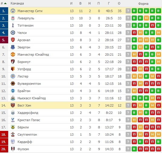 «Манчестер Сити» под руководством Хосепа Гвардиолы верен себе. Команда вновь следует по чемпионскому графику, написанному лично в прошлом сезоне. «Горожане», несмотря на возросшую конкуренцию и наличие прямых конкурентов в борьбе за титул, возглавляют турнирную таблицу английской премьер-лиги с 35 набранными очками.
