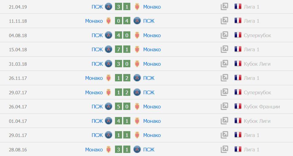 Французские коллективы встречались 94 раза. 41 победа у «Монако» и 28 у «красно-синих». «Парижане» во главе с Унаи Эмери пересекались с оппонентом 11 раз (изображение).