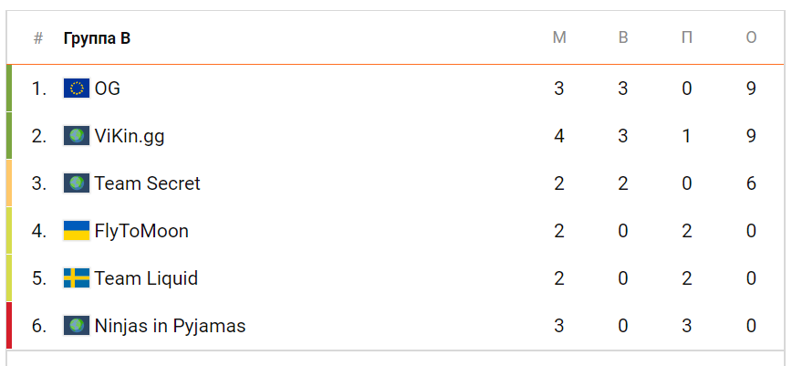 Когда аналитики Dota2RuHub увидели список первенств в группе В, они сразу указали на явных аутсайдеров. Это были Ninjas in Pyjamas, ViKin.gg и FlyToMoon. Некоторые записывали последнюю команду в фавориты за третье место. Однако форма игроков из Украины, «викингов» и показатели Team Liquid не оправдали ожидания экспертов.