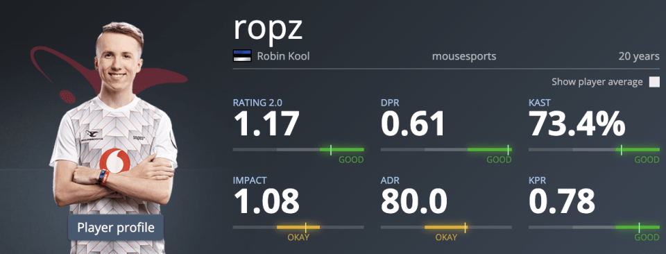 Соотношение убийств и смертей в этом году составляет 1.03. У двух игроков общий рейтинг ниже 1.0, у Karrigan и chrisj — 0.89 и 0.98. У остальных киберспортсменов mouz рейтинги достаточно высокие: woxic — 1.05, frozen — 1.13, ropz — 1.17.