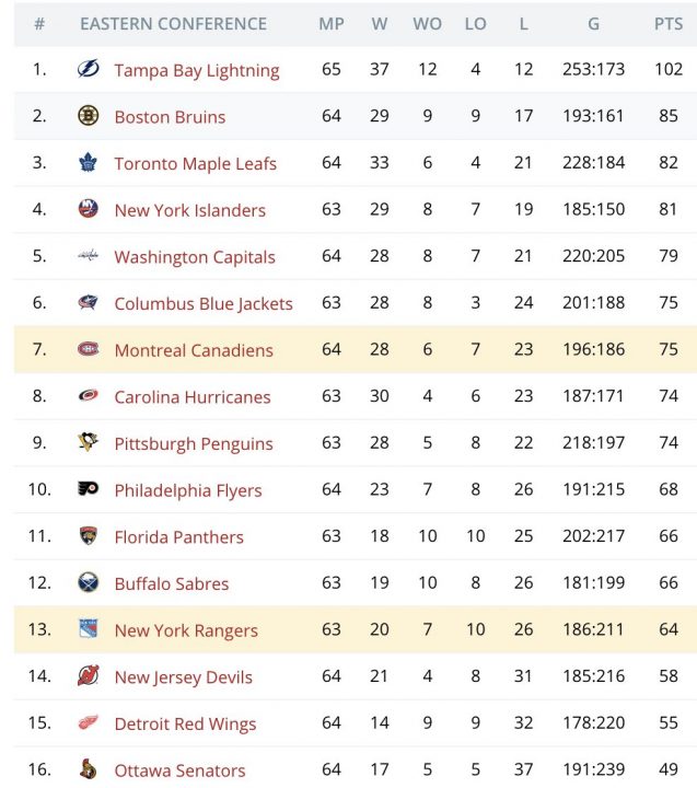 Говоря о «Монреале» в первую очередь необходимо обратить внимание на турнирное положение на Востоке.