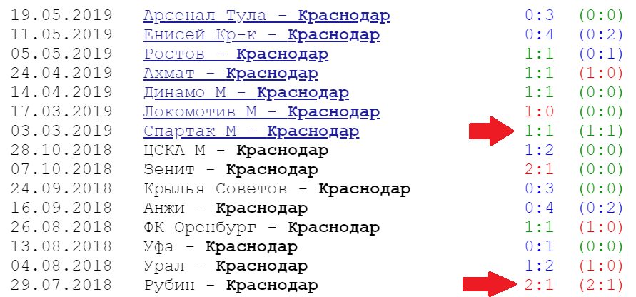 В основном, подопечные Сергея Матвеева часто пропускают на выезде. Против «Зенита», «Порту», «Уфы», «Ахмата» были распечатаны ворота «чёрно-зелёных». Статистика вторых 45 минут «Краснодара» в текущем сезоне (не берем во внимание товарищеские встречи).