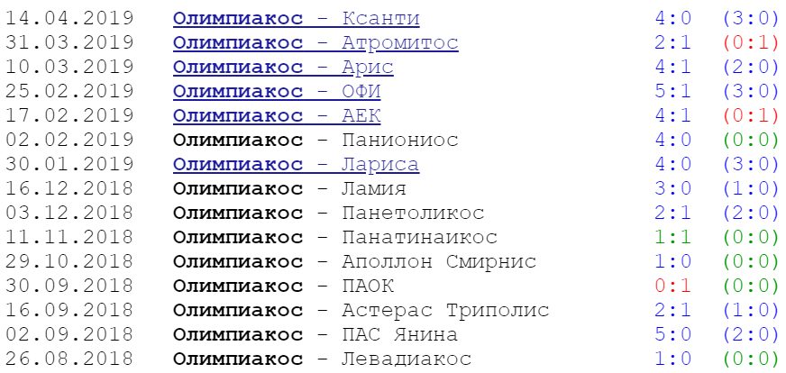 Прошлый год для «Олимпиакоса» — Лига Европы. В отборочных раундах клуб прошел «Люцерн» (Швейцария) и «Бернли» (Англия). Только в 1 поединке из 4 был забит 1 мяч. В остальных — от двух голов.