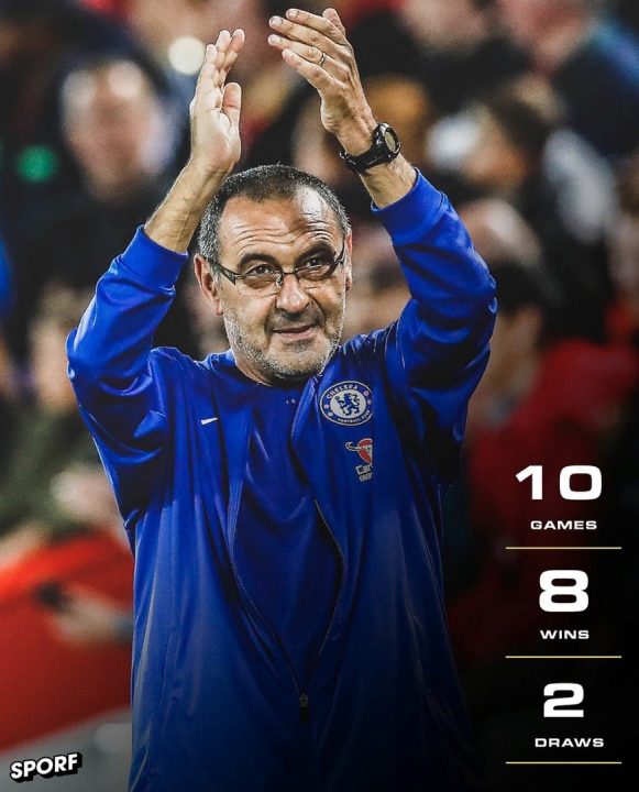 Маурицио Сарри может стать 6-м тренером, который не проиграл свои первые 8 матчей в английской премьер-лиге. Итальянец может присоединиться к Фрэнку Кларку (11), Джону Лайаллу, Питеру Тэйлору, Жозе Моуринью и Луису Фелипе Сколари (8).