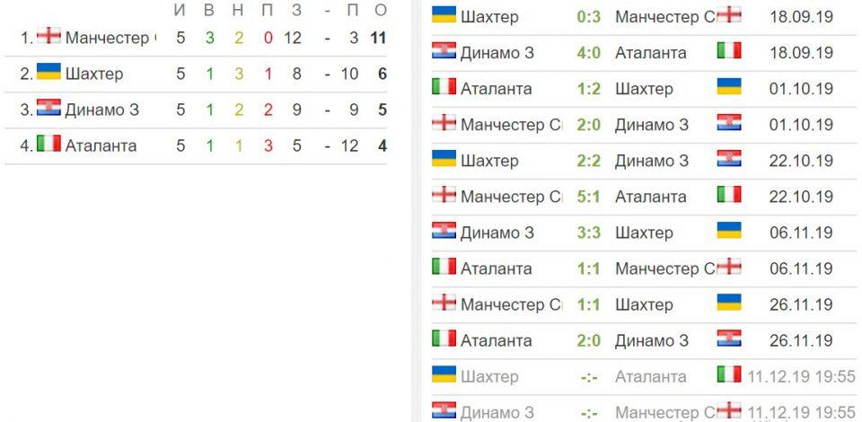 В Лиги чемпионов единственная группа С, в которой почти все команды претендуют на выход в 1/8 финала: «Шахтер», «Динамо» (Загреб), «Аталанта». «Манчестер Сити» уже досрочно занял 1 строчку. Донецкой команде будет достаточно ничьи в данном противостоянии, только тогда все будет зависеть от результата в Загребе. Смогут ли гости из Италии после трех поражений к ряду в ЛЧ одолеть «горняков» и выйти со второй позиции?