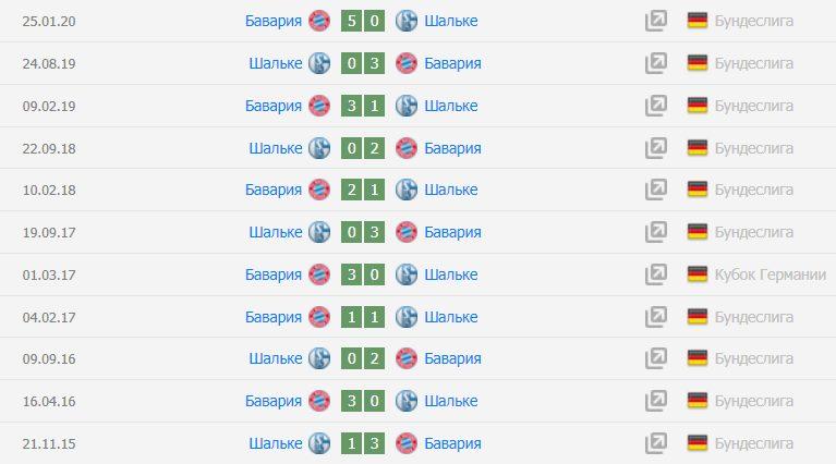 У «кобальтовых» крайне неудачная статистика очных противостояний с «красными». 62 победы (55%) у мюнхенцев, 20 у «Шальке» и 30 ничьи.