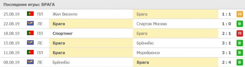 Исход «обе забьют: да» прошел в 5 из 6 играх. Данная ставка также проходила в трех гостевых матчах «Браги».