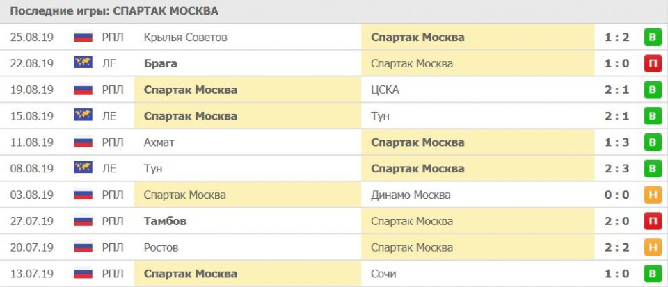 Последняя игра «Спартака» была против «Порту». Тогда были зафиксированы 2 выигрыша португальцев с общим счетом 3-10, где дважды прошло событие «ОЗ: да» !