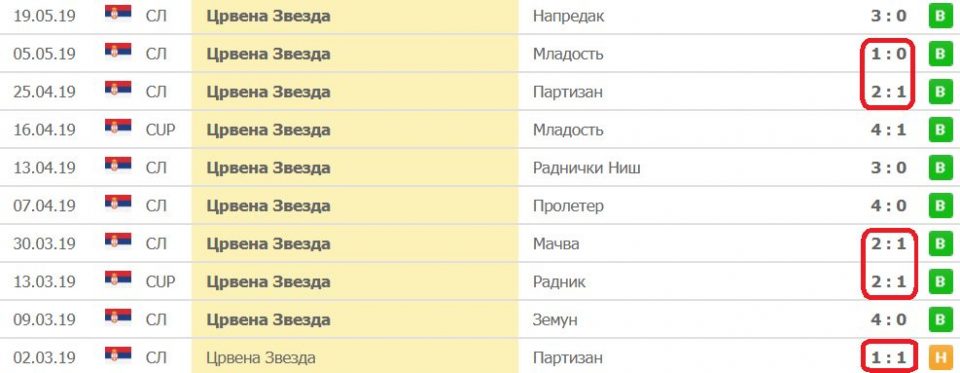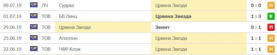 | Црвена Звезда (Сербия) | 3:0 | - |