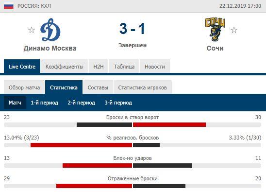 После перерыва на евротур московские динамовцы играли только дома. Начали с поражения в овертайме «Йокериту» 1:2, упустили победу в основное время матча, пропустив на последней минуте. Затем одержали победы над «Северсталью» (8:1) и «Сочи» (3:1). Здорово сыграли против «Северстали», но против «Сочи», несмотря на победу, вопросов по качеству игры достаточно. Гости имели территориальное преимущество, что отлично видно по статистике матча. В общем, в этой игре без везения для «Динамо» не обошлось.
