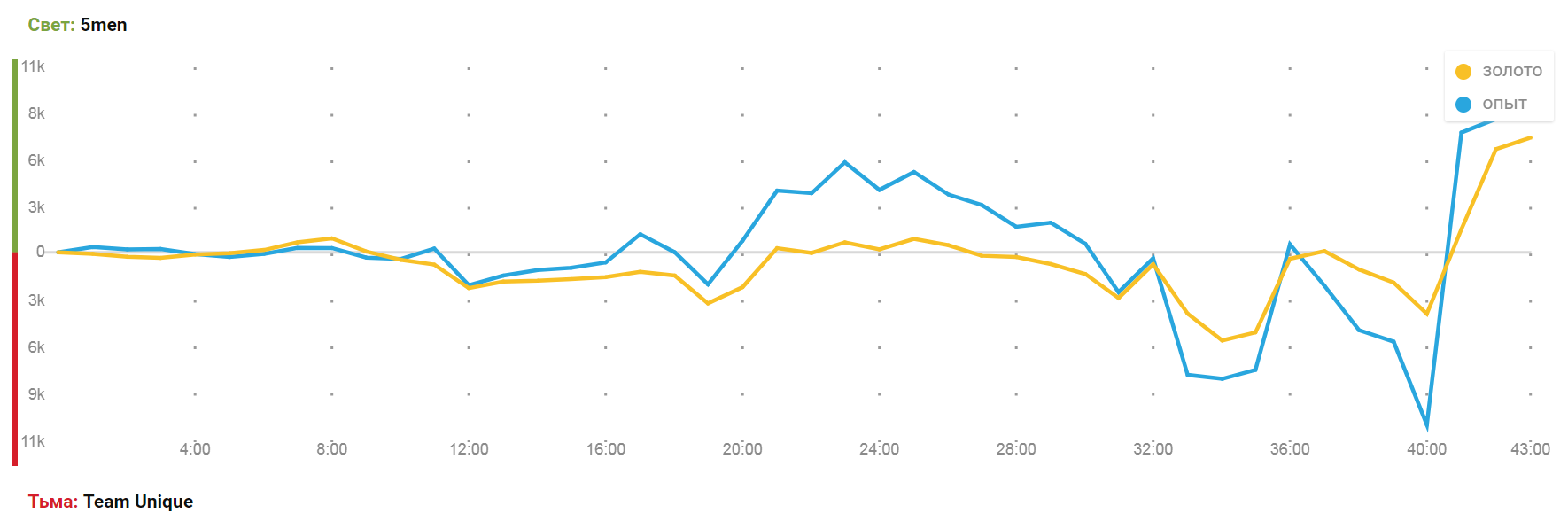 График 1-й карты. Первая игра могла и должна была закончиться в пользу Unique, но 1 драка на 40 минуте перевернула исход карты.