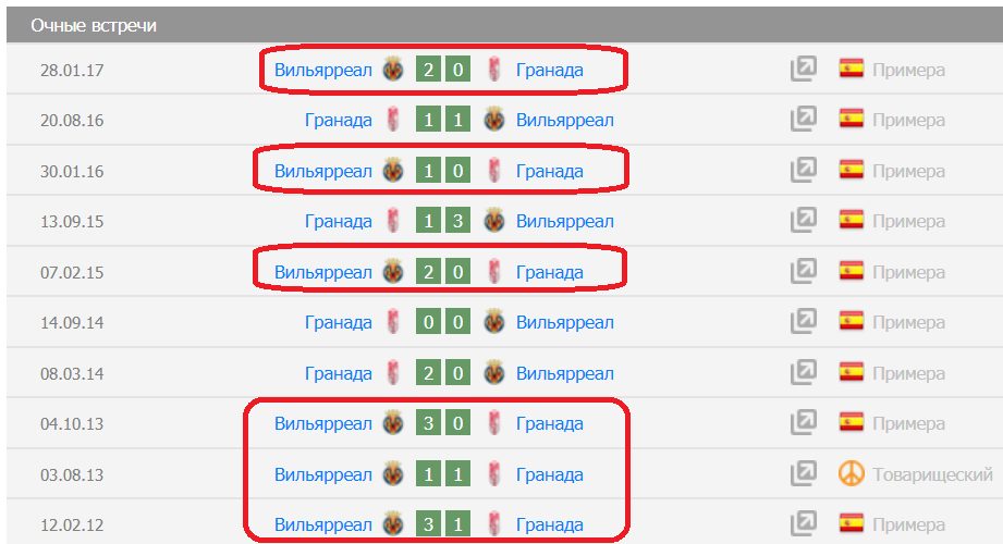«Вильярреал» и «Гранада» встречались 12 раз. 6 побед у «подводников» и всего лишь 2 у «бело-красных». Разница забитых и пропущенных мячей: 17-8 в пользу «желтых».