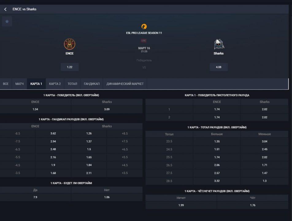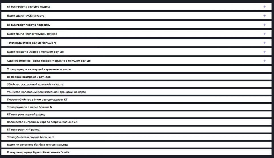В большинстве БК доступны следующие виды ставок на CS:GO: