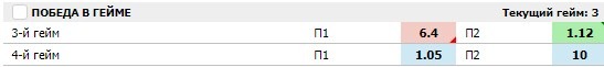 Излюбленный метод игры опытных бетторов — ожидание, когда коэффициент на победу подающего сильно поднимается и отличается от первоначального. Пользователь ждет, когда фаворит матча проиграет своем мяче со счетом 0:30 или 0:40.