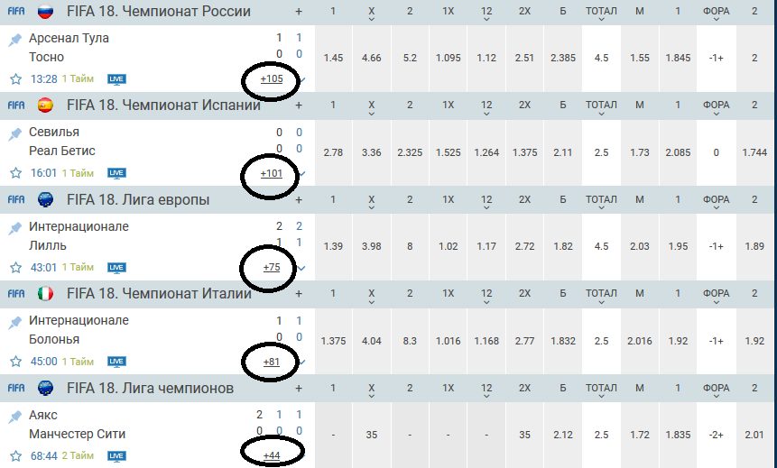 В некоторых случаях глубина лайв-линии на киберфутбол даже превосходит рынки на настоящий футбол. Особенно если сравнивать настоящие первенства вторых дивизионов или невостребованные лиги.