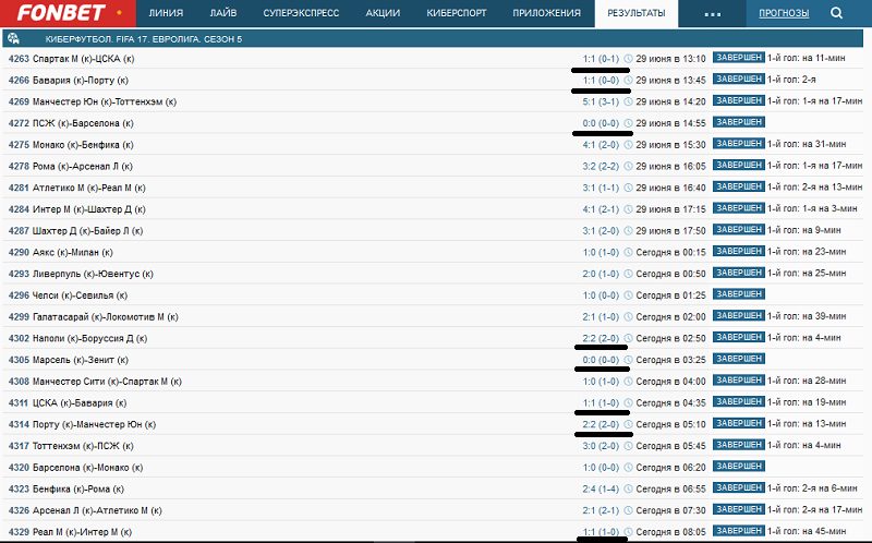 Все необходимые сведения о прошедших матчах можно найти на сайте БК в разделе «Результаты».