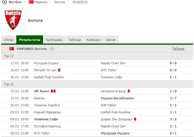 Как видно на изображении, в двух последних турах чемпионата Марокко по футболу, ничейный исход зафиксирован в 6 из 10 игр.
