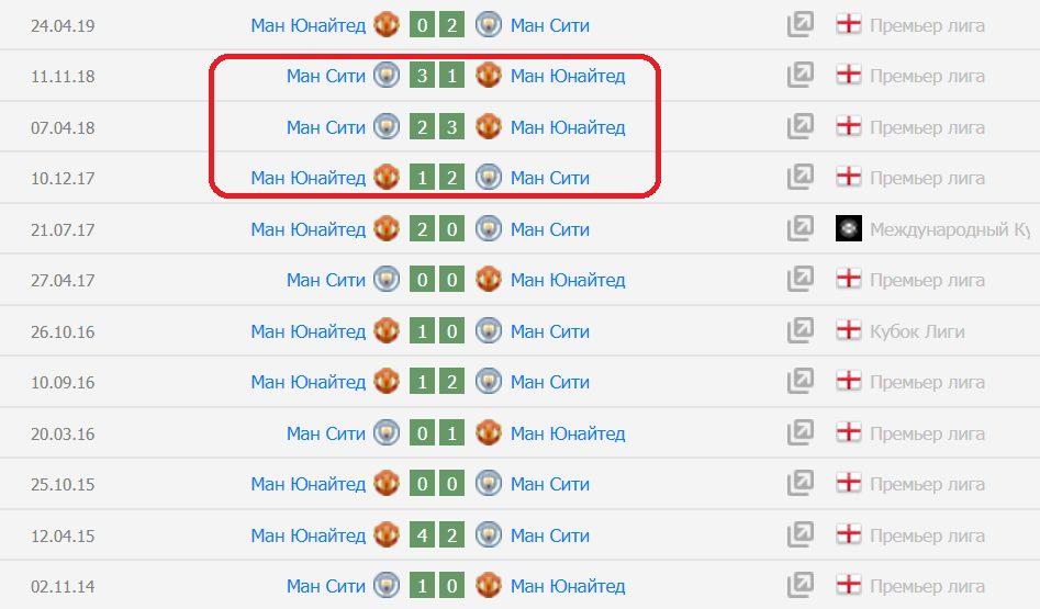 По правилам данной стратегии нужно посчитать сколько раз прошла ставка «Обе забьют» в последних 10 поединках обеих команд в рамках одного соревнования. У «Манчестера Сити» — 6 раз (60%), «Манчестера Юнайтеда» — 7 (70%). Данные числа подходят под критерии стратегии.