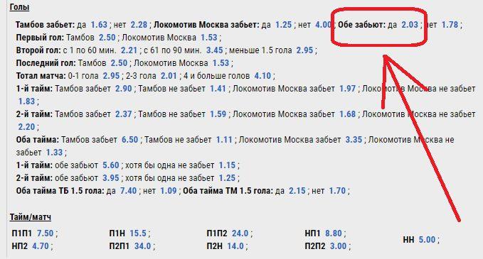BTTS (Both teams to score) — обе команды забьют. Первые две ставки прошли на последних минутах! В следующей — снова возвращаемся в Российскую Премьер-Лигу. Третья игра для текущей стратегии: «Тамбов» — «Локомотив». Не думайте, что аутсайдер играет против явного фаворита. Специалисты оценивают шансы гостей одержать победу в предстоящем поединке коэффициентом 1.9 .