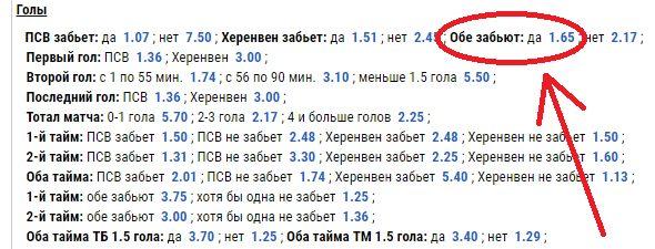 65% > 60.6%, поэтому, поединок «ПСВ» — «Херенвен» подходит под стратегию BTTS (Both teams to score).