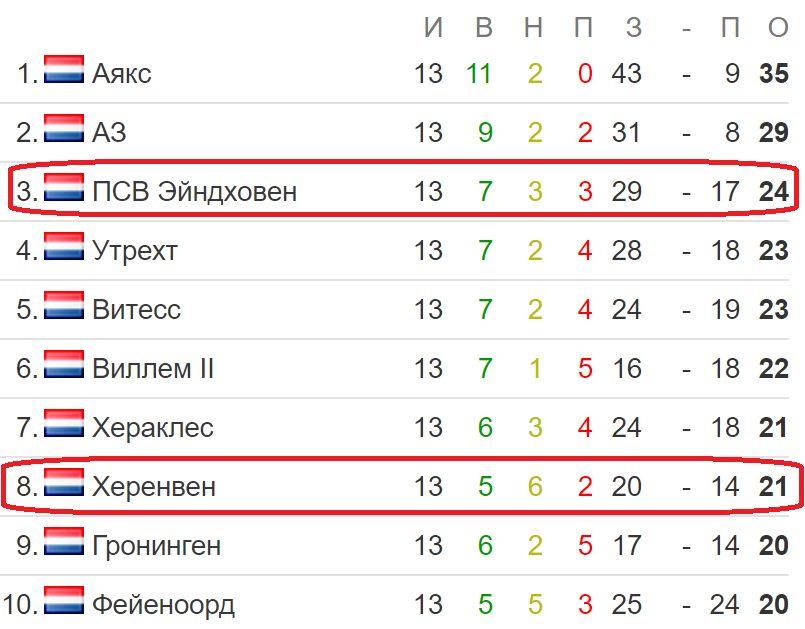 «Херенвен» всего лишь на 3 балла отстает от «красно-белых». 1 победа и футбольный коллектив сможет подняться с 8 до 3 строчки.