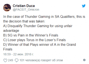 Победители сетки виннеров квалификаций на TI8 южноамериканского региона Thunder Predator попрощались с возможностью попасть на главный турнир года. Причиной тому стал бан команды за использование макросов.