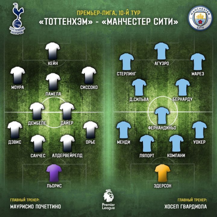 Маурисио Почеттино оставил в запасе Деле Алли, который только восстановился после травмы, а так же Кристиана Эриксена вместо датчанина вышел Эрик Ламела. У «Манчестер Сити» без каких-либо сюрпризов. Де Брюйне еще не набрал форму после травмы и ожидаемо начал матч на скамейке.