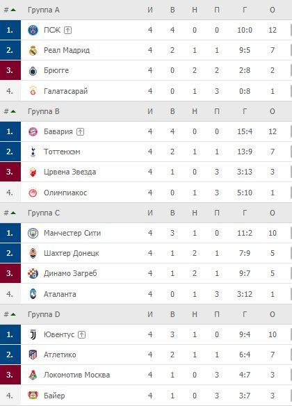 В группе В также всё предсказуемо. «Олимпиакос» долгое время удерживал ворота в неприкосновенности, но всё же сдался под напором «Баварии» (2:0), а «Тоттенхэм» успешно завершил не самый простой выезд в Сербию, где разгромил местную «Црвену Звезду» (4:0). В составе «шпор» дублем отметился Сон-Хын-Мин.